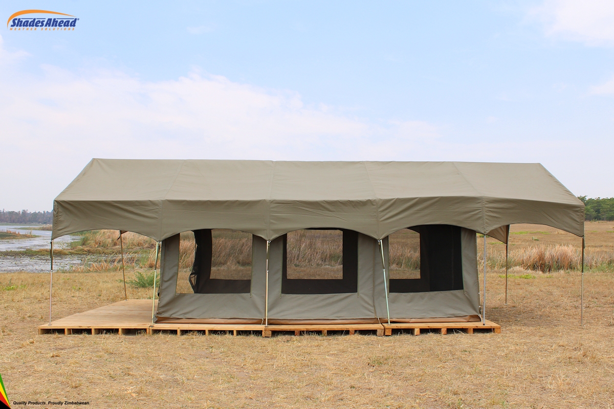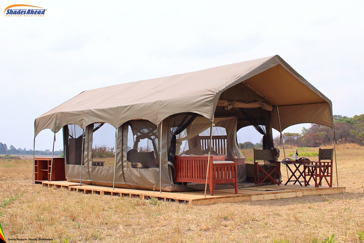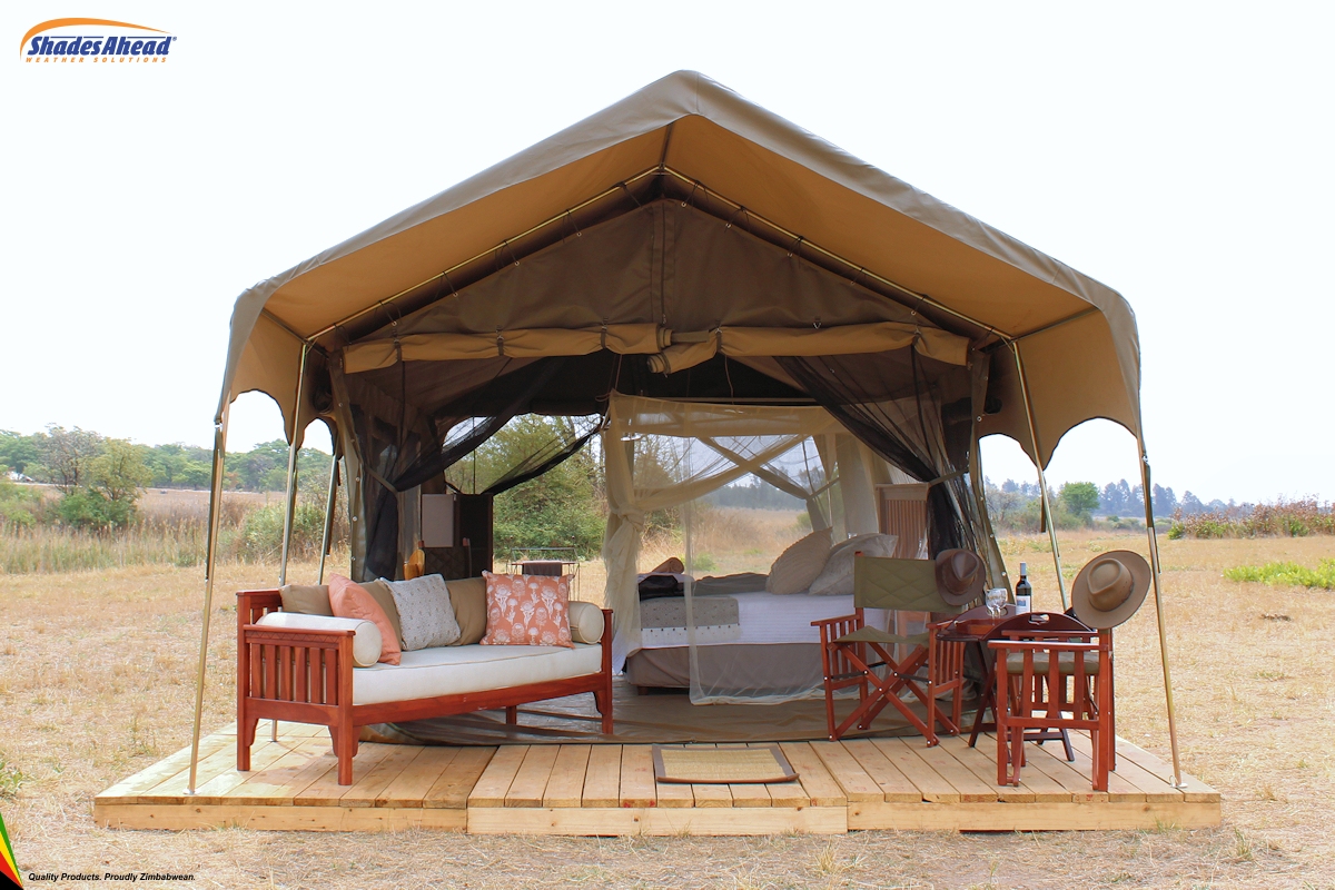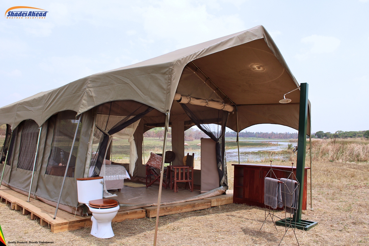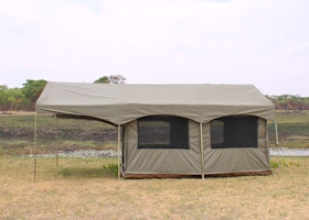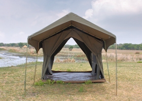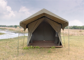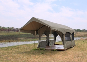 If you don't want to camp rough, try glamping. Glamping is a portmanteau of "glamorous" and "camping", and describes a style of camping with amenities and, in some cases, resort-style services not usually associated with "traditional" camping. We offer several levels of luxury tents, from the Sanyati™, a 3 module tent with attached bathroom and large veranda area, to the Mopane™, a 4 person Bow tent with a veranda fly.